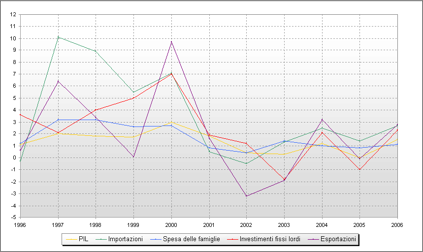 I dati di consuntivo relativi a USA e Giappone sono invece tratti dal FMI, World economic outlook (settembre 2005); per il 1996-1997, cfr. rapporti precedenti del FMI.