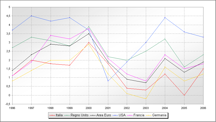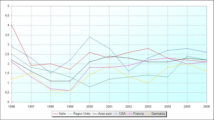§ Inflazione – Confronti internazionali - Dati di consuntivo 1996-2004 e previsioni 2005-2006