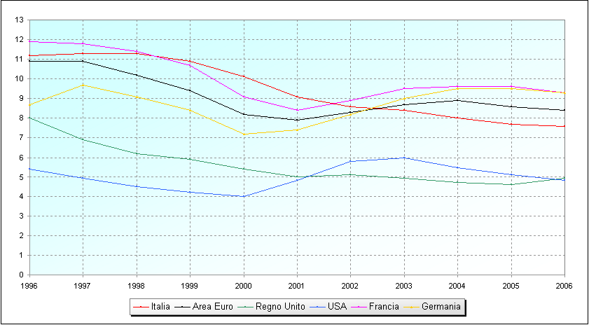 § Disoccupazione – Confronti internazionali - Dati di consuntivo 1996-2004 e previsioni 2005-2006