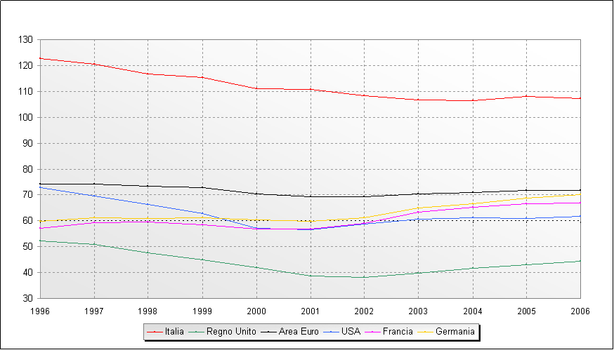 Debito delle P.A. – Confronti internazionali - Anni 1996-2006