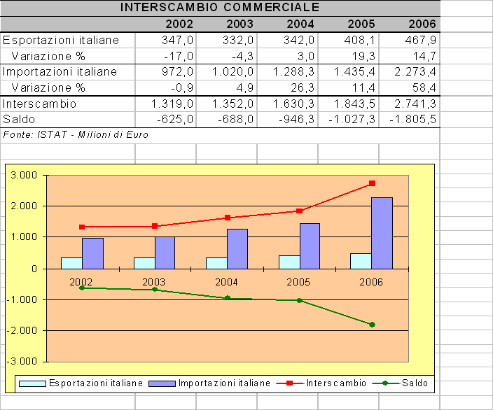 INCIDENZA INTERSCAMBIO SUL COMMERCIO ESTERO ITALIANO (2006) |