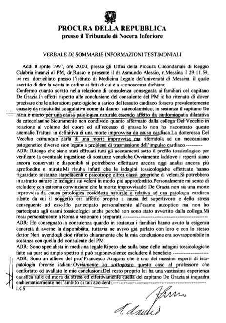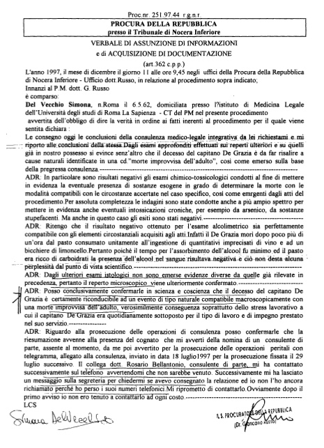 2 - Le cause della morte del capitano De Grazia e l'inchiesta della magistratura ... 243