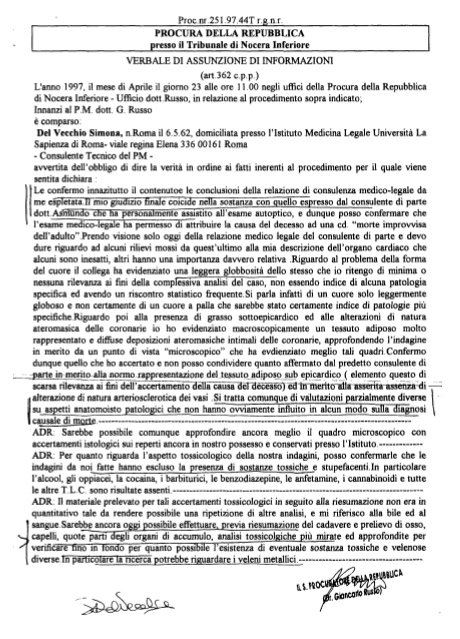 2.3.1 - Le conclusioni dei consulenti medico legali nominati nell'ambito del procedimento avviato dalla procura di Nocera Inferiore ... 274