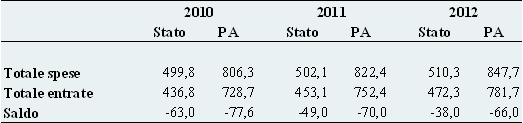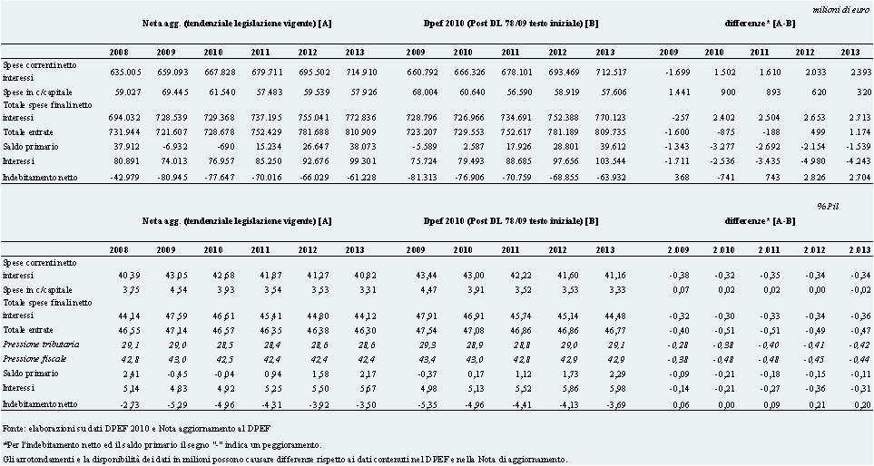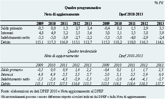 Nota di aggiornamento e DPEF 2010- 2013: Fabbisogno del settore statale e del settore pubblico