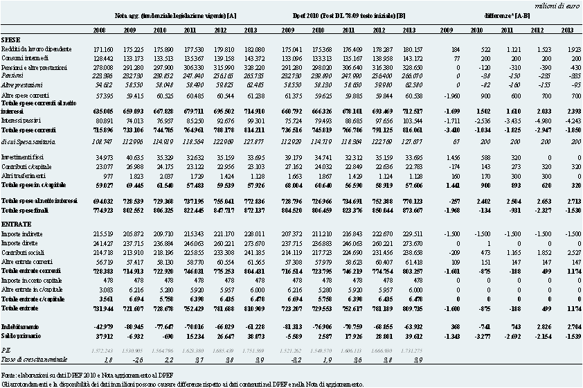 Rispetto alle indicazioni fornite dal DPEF 2010-2013,