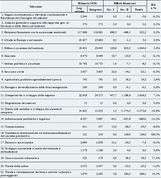 [24] A seguito della riduzione per spending review, la variazione effettiva di bilancio è pari a 2,5 mln per il 2018 e a 2,8 milioni per il triennio 2019-2021.