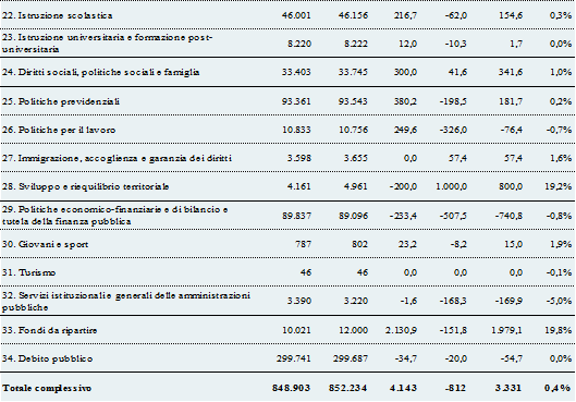 [22] A seguito della riduzione per spending review, la variazione effettiva di bilancio è pari a 4,2 mln per il 2018 e a 4,6 milioni per il triennio 2019-2021.