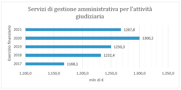 Al funzionamento degli uffici giudiziari sono dedicati stanziamenti definitivi pari a 762,4 milioni di euro (in aumento di 132,1 mln rispetto alle previsioni iniziali).