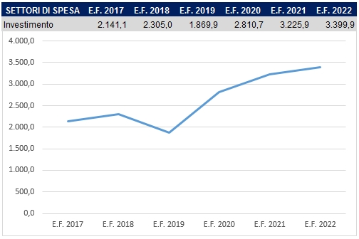 degli stanziamenti a legge di Bilancio 2020, le risorse previsionalmente disponibili al settore dell'investimento ammontano per l'anno 2020 a 2.810,7 M€, 3.225,9 M€ per il 2021, 3.399,9 M€ per il 2022. La tabella di figura 10 fornisce una comparazione tra l'assegnazione a bilancio relativa al triennio 2017-2019 e le previsioni a legge di bilancio per il triennio 2020-2022.