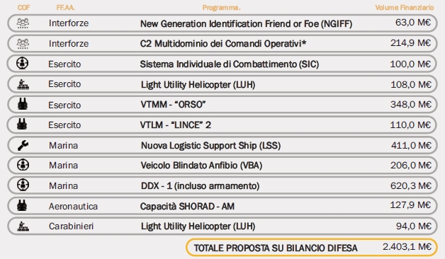 * Include la realizzazione del Joint Operation Center (JOC) del COI e lo sviluppo evolutivo in ottica multidominio, della funzioni di comando e controllo del Comando Interforze delle