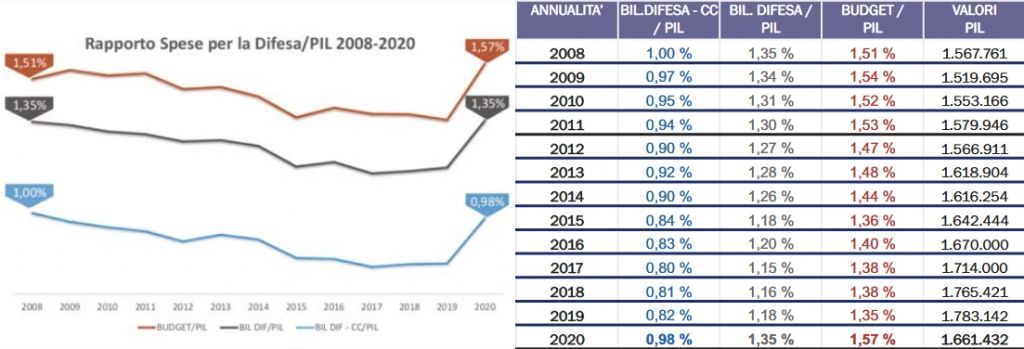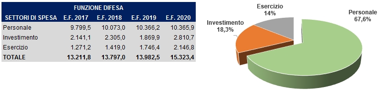 - le spese relative alla funzione difesa, comprensive delle risorse assegnate da altri Ministeri.