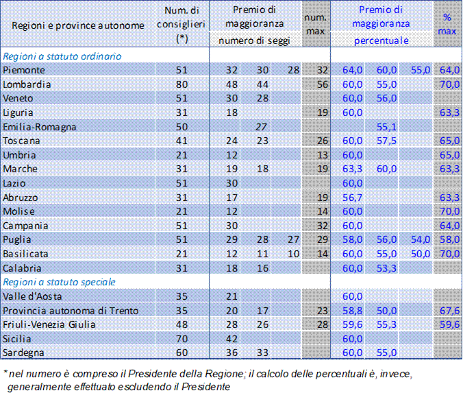 · un’esposizione sintetica del sistema elettorale dei sindaci e della forma di governo regionale, con una descrizione delle diverse tipologie di premio di maggioranza a livello regionale;