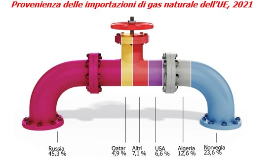 importazioni di gas via gasdotto dalla Russia sono diminuite fino a costituire, al settembre 2022, il