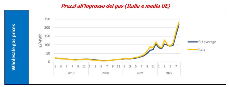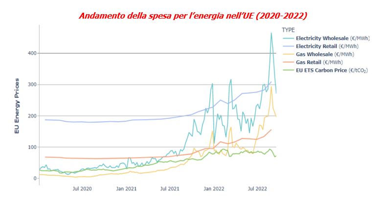 aumentata di oltre un terzo in media in tutta l'UE, mentre in alcuni paesi è quasi raddoppiata, con un significativo impatto su famiglie a basso e medio-basso reddito, piccole e medie imprese e industrie Il grafico che segue illustra l'andamento dei