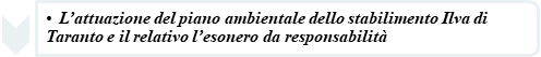 [78] Si ricorda che comma 4-quater è stato inserito all’interno dell’articolo 4 del D.L. n. 347/2003, da parte dell’articolo 1, comma 10, del D.L. n. 134/2008 (L. n. 166/2008). È stato quindi riscritto dall’articolo 1, comma 4, del D.L. n. 1/2015 (L. n. 20/2015), che ha previsto l’opzione dell’affitto, e non più solo della vendita degli impianti soggetti ad amministrazione straordinaria. Il comma 4-quater è stato poi nuovamente modificato dall’articolo 1, comma 1, lett. a-c), D.L. n. 191/2015 (L. n. 13/2016), col fine – per quel che riguarda specificamente il primo periodo del comma 4-quater cui si vorrebbe ora derogare – di specificare che, tra le garanzie che debbono essere valutate dal commissario ai fini della designazione dell’affittuario o dell’acquirente, la garanzia della rapidità e dell’efficienza dell’intervento debba concernere anche i profili di tutela ambientale.