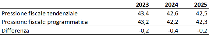 Tabella 6 – Pressione fiscale tendenziale e programmatica[13]