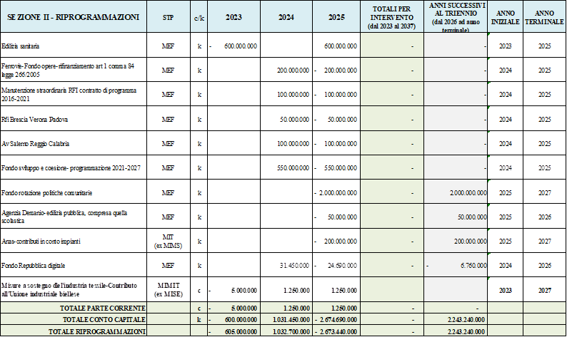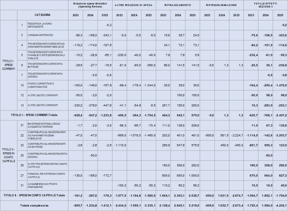 Gli effetti imputati alle riprogrammazioni, ai rifinanziamenti e ai definanziamenti di stanziamenti di bilancio costituiscono la parte della manovra inclusa nella sezione II del DDL di bilancio (ai sensi dell’articolo 23, comma 3, lettera b))[7].